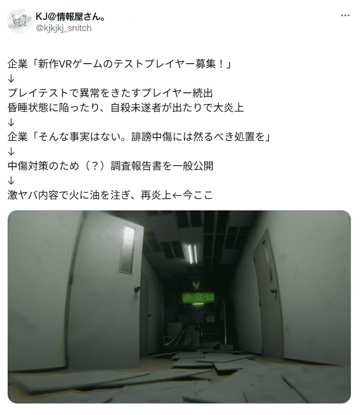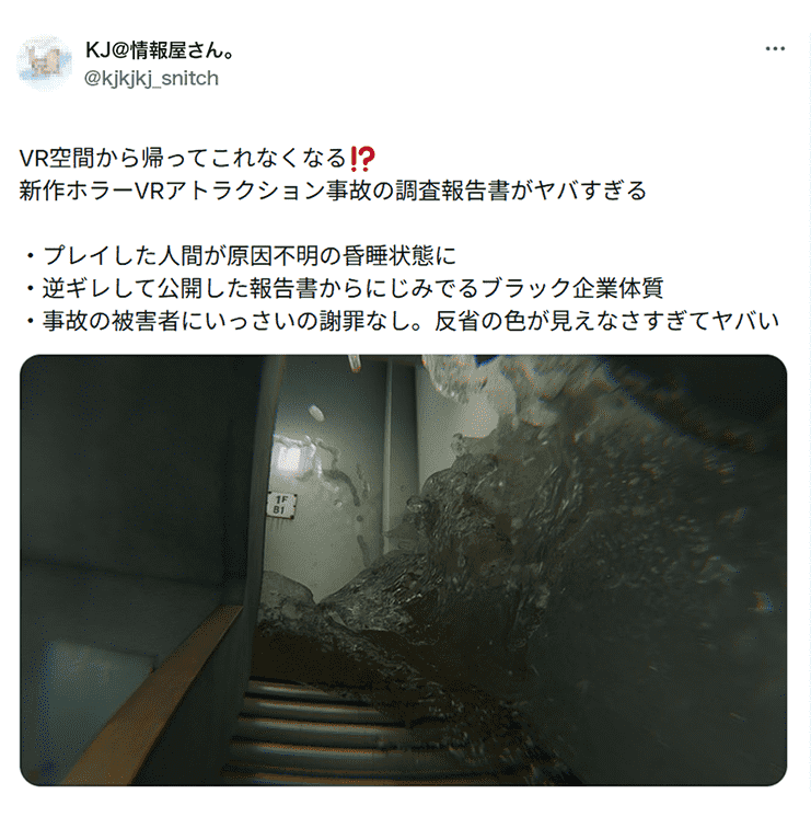 しかし、SNSにて本作を体験したと語る一部のユーザーが体調不良を訴え、その原因は本アトラクションによるものであるという趣旨の投稿を行いました。