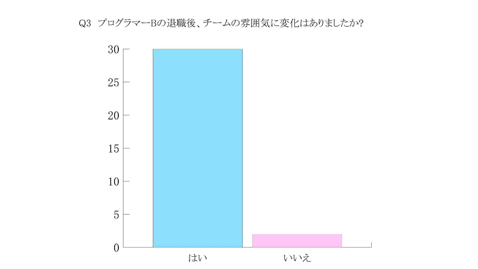 プログラマーBの素行について、開発チーム内でアンケートを実施した。設問すべてに回答した社員は全32名である。